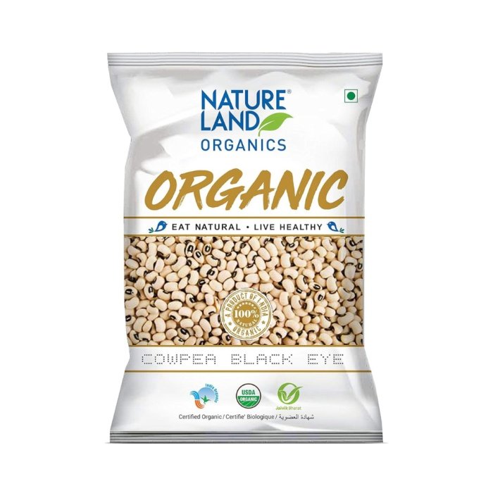 Natureland's organic cowpea Black eye/chawli is unpolished, unadulterated, anti inflammatory, cleaned and hygenically packed.