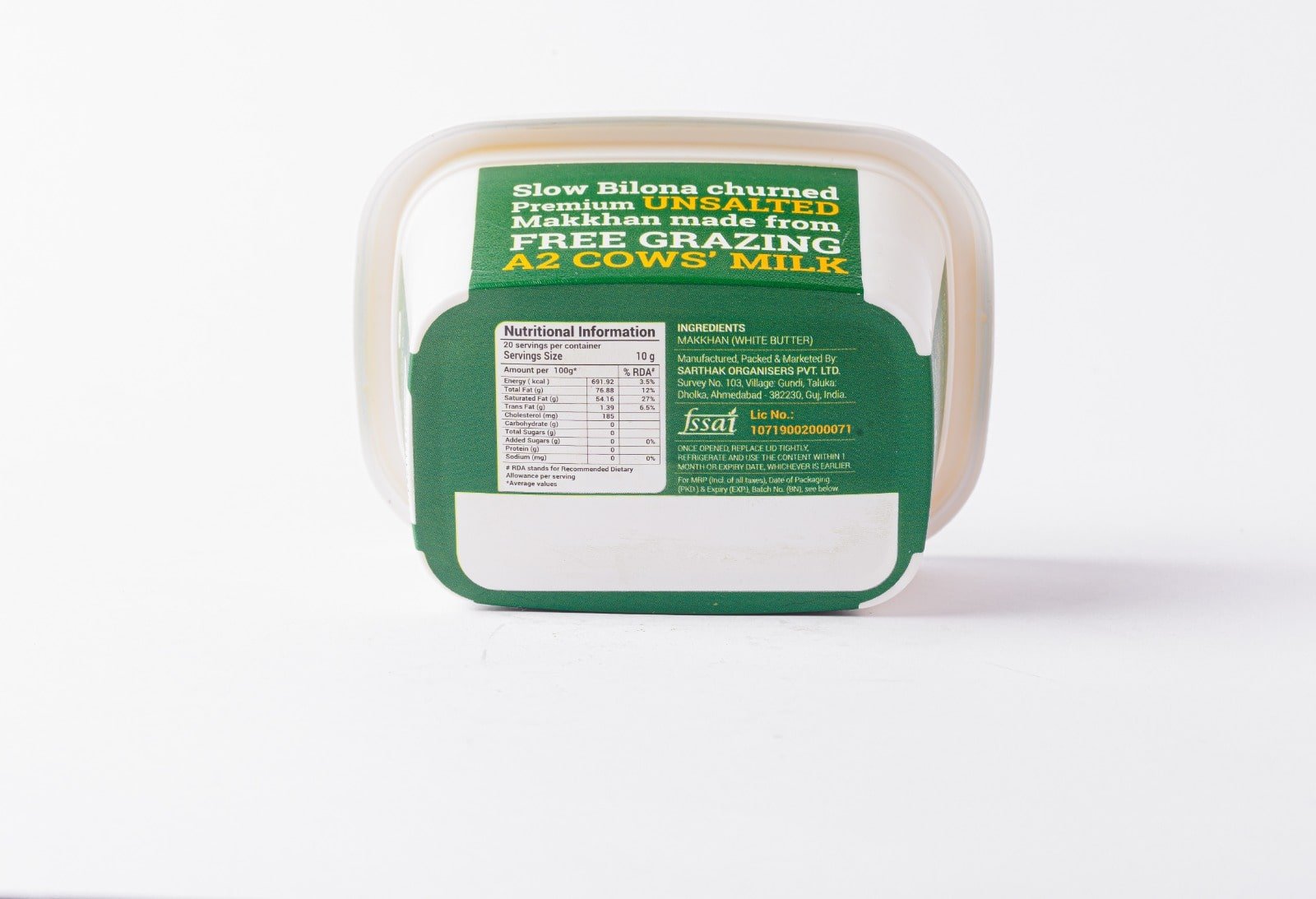 Indulge in the richness of A2 Unsalted Butter (Makkhan), made from the nutrient-rich milk of desi cows. Following the age-old bilona churning process, we create this butter by fermenting whole milk into curd and then churning it to extract pure makkhan. This method retains the essential vitamins, minerals, and healthy fats, offering superior taste and health benefits.