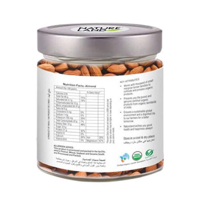 Natureland organic almonds are sourced from organic grown selected trees after three years of plantation.
