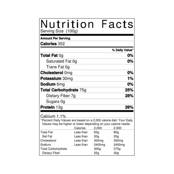 Organic Tattva?s Organic Idli Rice is a great source of protein, calcium and iron. Apart from these, a bowl of Organic Idli Rice contains dietary fibres, sodium and all the nutrients that are necessary for your body. A 100g serving of Organic Idli Rice contains 0g trans fat and 0mg cholesterol. The calorie count per serving of Organic Idli Rice is 352. If living a healthy life is your aim, then switch to Organic Idli Rice by