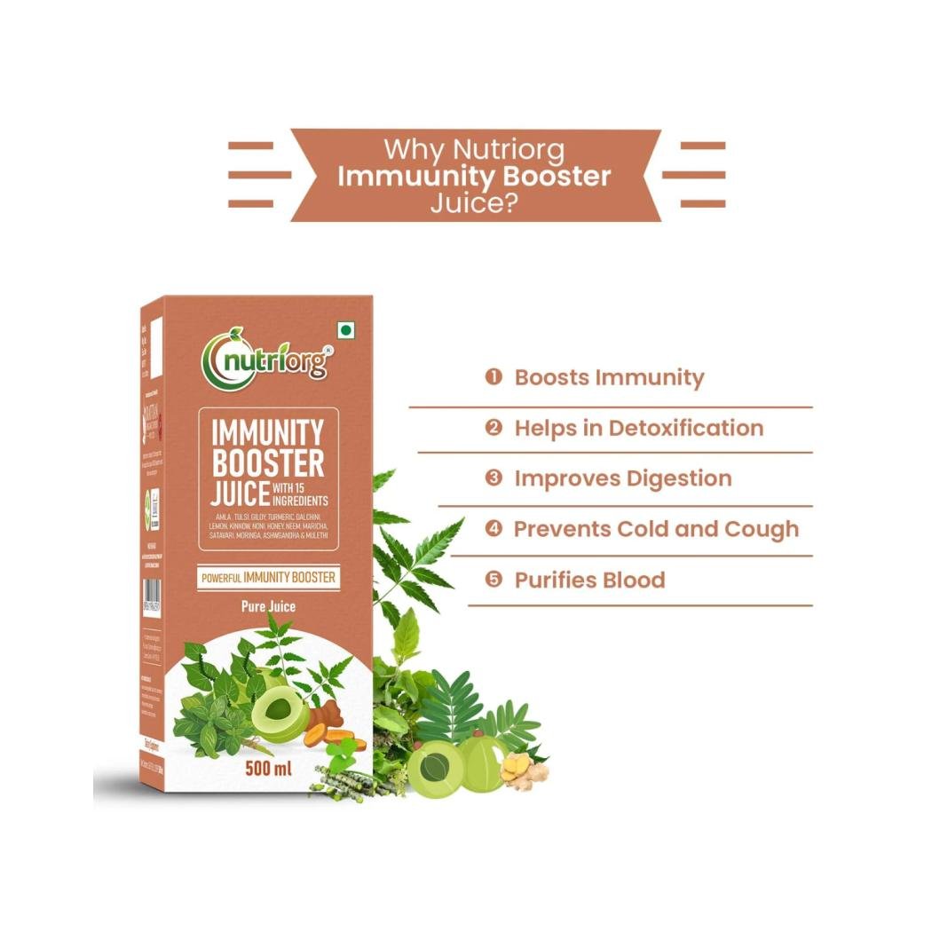 The Nutriorg Immunity Booster Juice helps to build a strong immunity and for it to function actively so that your body can fight any type of germs to protect it from various ailments. They have strong immunity boosting properties that boost the body’s immunity very swiftly. It improves your digestion.