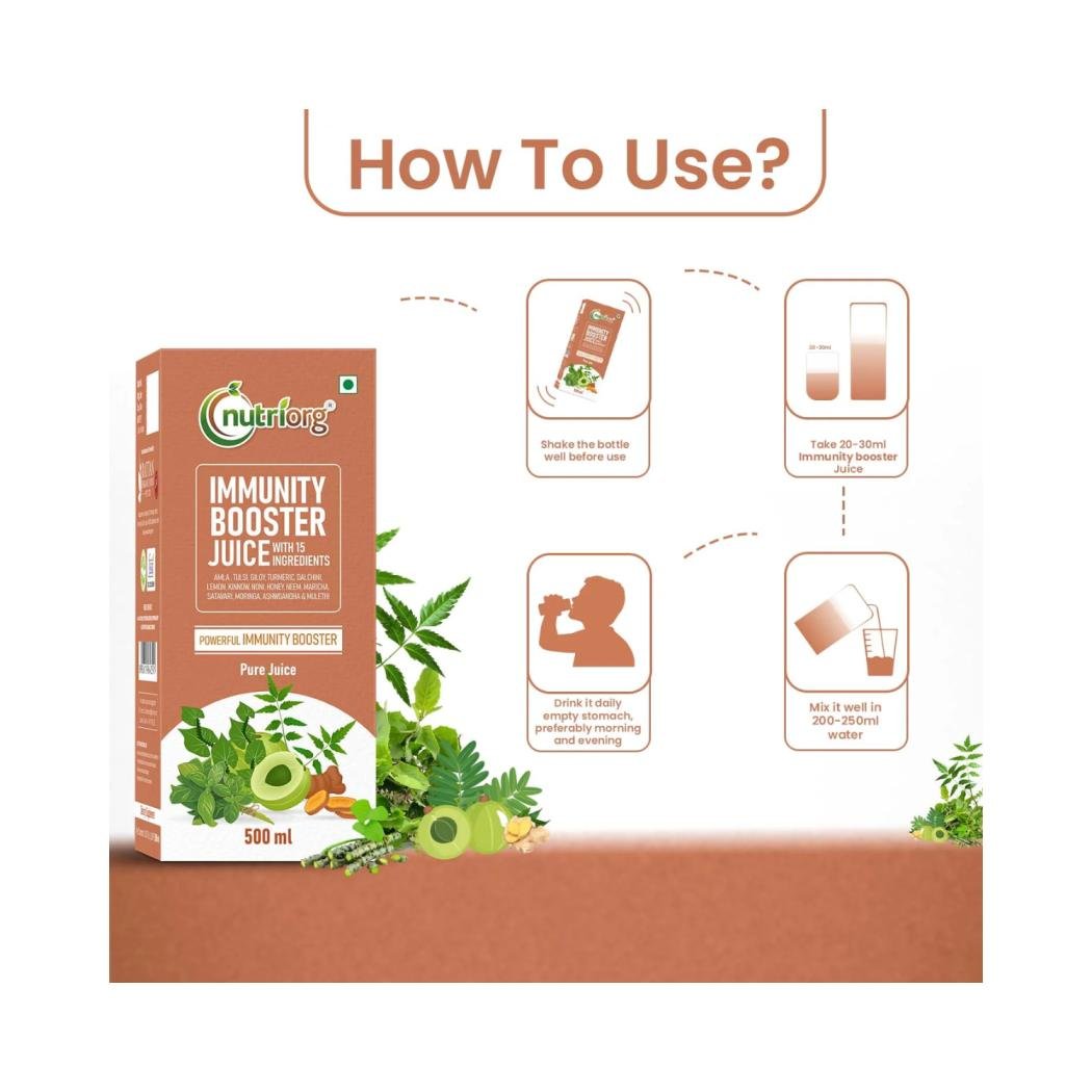 This juice is also very beneficial to reduce acne scars and other forms of pigmentation on the skin. The ingredients together balances out the hormones. In an aggregate the Nutriorg Immunity Booster Juice is a boon in disguise for everyone who aims to strengthen their immunity to fight diseases.