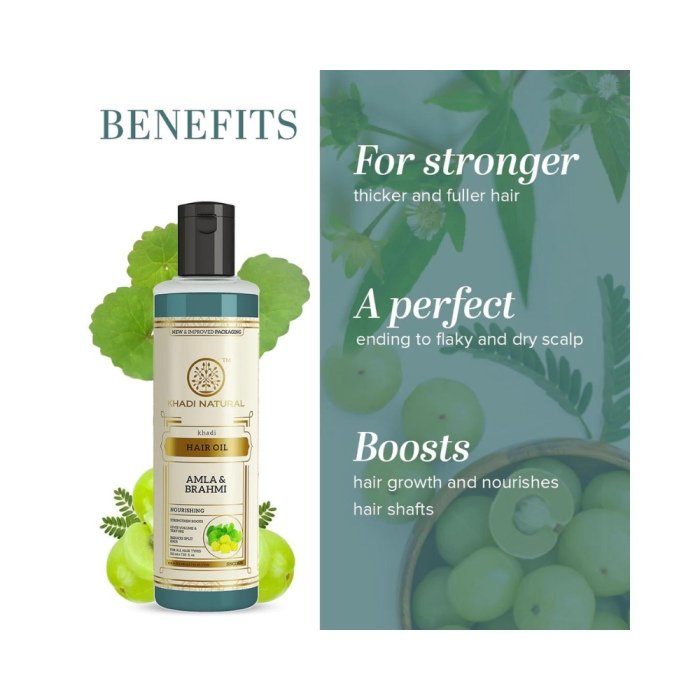 Amla & Brahmi Hair Oil lubricates and conditions the scalp, helping to minimize flakes and dry scalp. It helps enhance hair quality, strengthen the roots of the hair, nourish the hair-shafts, boost new hair growth, and strengthening current hair. Brahmi protects hair follicles, reduces breakage and split ends, eliminates itching scalp and dandruff making hair stronger, thicker, fuller.