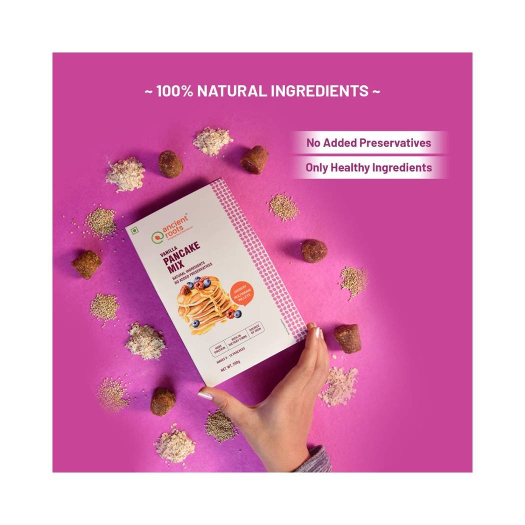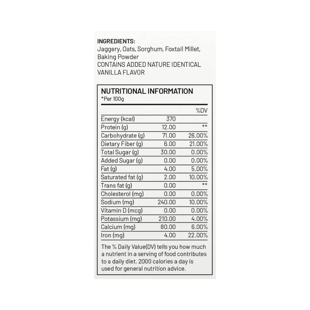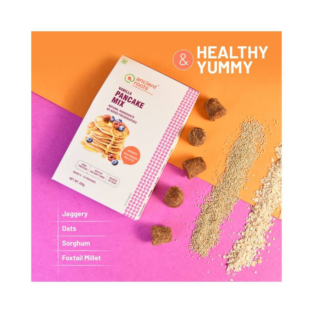 '- This Healthy multigrain pancake mix has been curated keeping in mind the nutritional needs of growing kids. This pancake mix is made up of Jaggery, Oats, Sorghum, Foxtail Millet, Baking Powder.