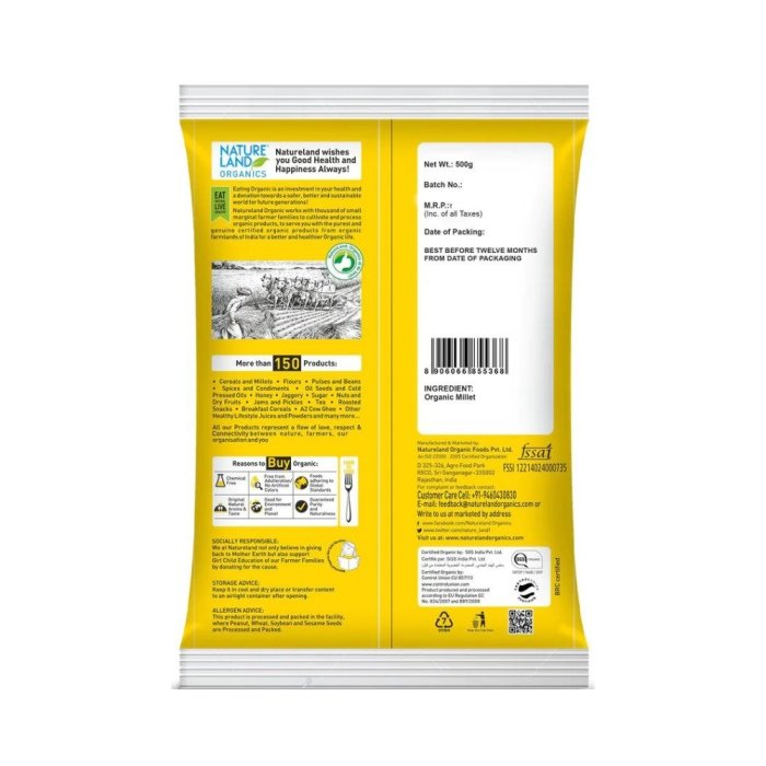 - Organically Grown: Sourced from farms that follow stringent organic farming practices, this millet is free from synthetic pesticides and chemical fertilizers.