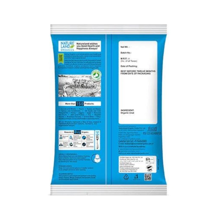 Natureland Urad Dal is processed from organic Urad Whole by dehusking the whole bean and splitting the whole urad bean in two parts. It is machine cleaned and handpicked, before packing to ensure its purity and hygiene.